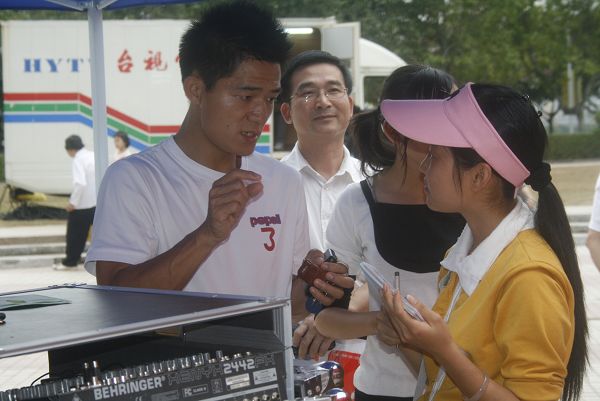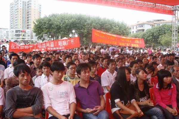 校团委还组织了电子与信息工程学院、工商管理学院共600余名志愿者到茶山公园,积极参与配合“唱响广东”大型文艺活动河源赛区的海选。