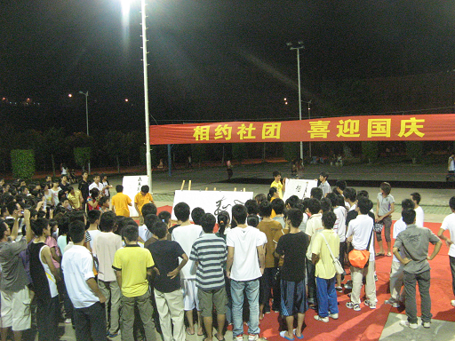 为让刚刚走进大学殿堂的新生更好的了解社团,融入社团,我校学生社团联合会在继9月17日晚举办的主题为“相约社团,喜迎国庆”的晚会后,于9月19日再次组织我校各社团和新老同学相约在灯光篮球场。学生社团联合会各主要干部及各社团主要负责人出席了此次晚会。
