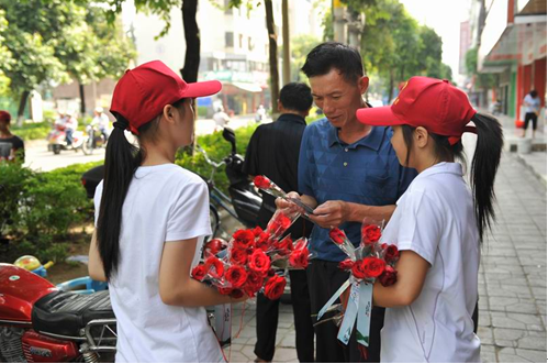 早上8点钟,志愿者的身影就出现在政府机关的周边,向机关干部职工赠送玫瑰,收到玫瑰的干部职工非常惊喜,纷纷赞许志愿者这样的宣传方式,表示将以良好的工作状态支持这次玫瑰赠送活动;9点钟,志愿者又移师闹市,在兴源路、中山路、大同路、公园广场、车站等人流量较大的街道、场所、工厂,向市民朋友赠送玫瑰。