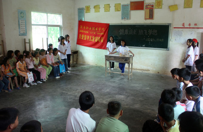 在前五天的教学活动中,关爱留守儿童组的志愿者们细心地发现了部分孩子性格内向沉默、不合群等现象。志愿者们针对这种情况特地将这些孩子们分班以便进行特别辅导,并举办了此次心理知识讲座。