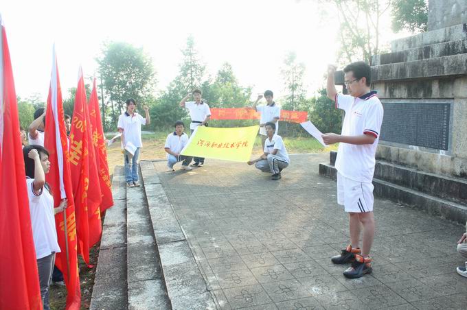 活动上,志愿者们举行了向革命先烈敬献花圈、三鞠躬和默哀仪式。随后,我校志愿者代表曾雪简要介绍了苏区革命传统教育基地和爱国主义教育基地。在神圣的纪念碑下,团委黄亮副书记带领全体志愿者领读入团宣誓词。最后,全体志愿者瞻仰革命烈士纪念碑,缅怀革命烈士。