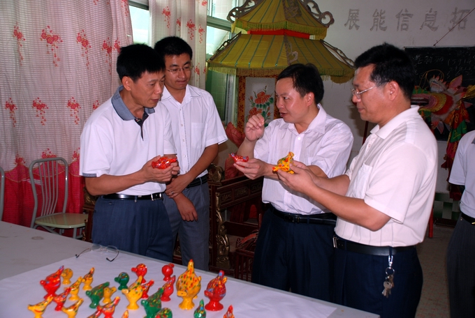 商讨交流会上,高书记谈到,作为一所大学的管理人员,我们必须有一种“文化自觉”,以河源特色文化为突破口,提高办学水平、创新办学特色。希望可与和平文化部门及泥鸡代表性传承人陈少波合作,通过设立“和平泥鸡河职院传承基地”,对将可能失传的泥鸡作保护、传承和发扬。对于如何设立此传承基地,高书记表示,我们首先要把制作技巧和工艺完全学回来;然后加以研究改进、使其音韵、音调标准化;最后由老师传授给学生,组织学习排练。届时,体现客家文化特色的泥鸡不单能够被传承下来,还能发扬光大,创新地结合各种表演形式进行吹奏。