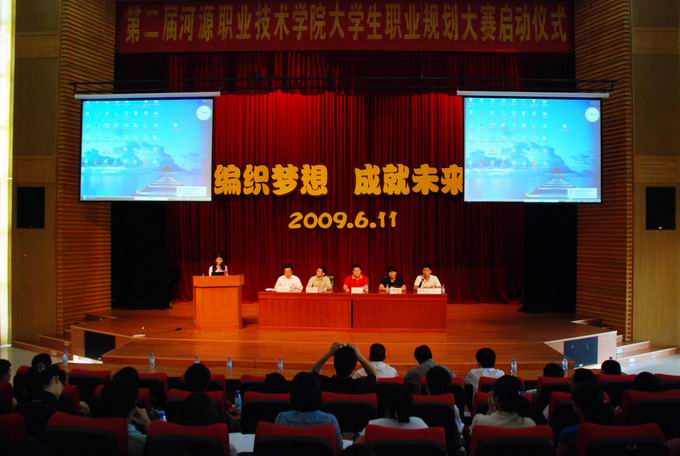 启动仪式由学工处负责人主持。我校参加第四届广东省大学生职业规划大赛获优胜奖的学生吴厦蓉同学作了发言。她从自己实习就业的历程谈到职业生涯规划对职业素质的提高和学习、择业、就业的极大作用。随后,学校就业中心负责人对学校第二届职业规划大赛的规程作了说明。省教育厅高校毕业生就业指导中心测评培训部主任向丹阳对我校积极开展大学生职业生涯教育以及所取得的成效表示赞赏。