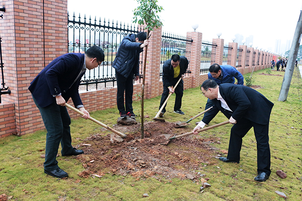 (校团委通讯员 黄志远,学生文字记者 陈浩扬 罗小冰 祝仲良)3月10日上午,我校于机电工程学院实训楼南校道开展义务植树活动。学校赖小景副校长率领部分中层干部、教师代表、学生志愿者共同参加此次活动。