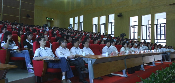 4月29日下午,市委书记陈建华莅临我校作“坚持科学发展、实现率先崛起”的主题报告会。报告丰富详尽地描绘了河源坚持科学发展观,从“经济崛起、生态崛起、文化崛起”几个方面实现“率先崛起”的发展蓝图,陈书记更以自己的人生经历,勉励我校学生要认真学做人、学做事,以客家人“落地生根”的信念和姿态迎接挑战,积极就业、创业,贡献社会。参加报告会的有市委常委、秘书长赖泽华,副市长叶维园,市委副秘书长王海滨,以及我校领导、师生代表共600多人,报告会由我校党委书记高仁泽主持。