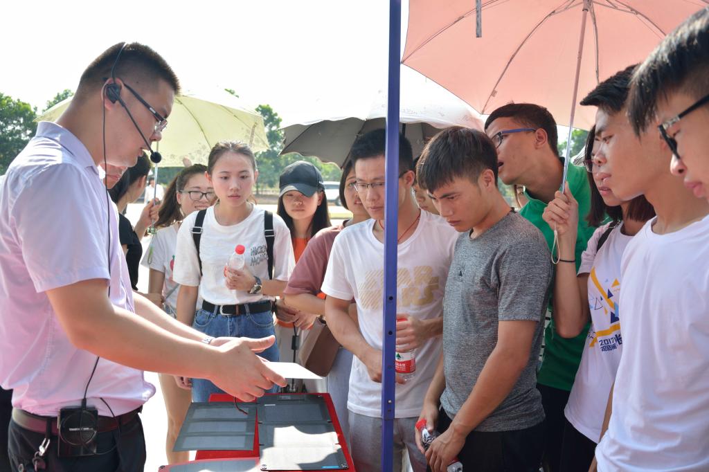 河源市此次科普日活动以“创新驱动发展•科学破除愚昧”为主题,通过建设表彰科普示范镇、村、基地等形式动员全市人民共同参与。我校学子参与本次活动旨在贯彻落实习近平总书记给第三届中国“互联网+”大学生创新创业大赛“青年红色筑梦之旅”大学生重要回信精神,并通过科普活动提升大学生对科技创新成果的认知度,营造讲科学、爱科学、学科学、用科学的浓厚氛围,激发大学生的创新创业热情与活力。现场,我校学生积极参观科技产品,仔细听取现场科技人员对产品的讲解,热情观察操作科技产品,由此增进了大家对科学文化知识的了解。