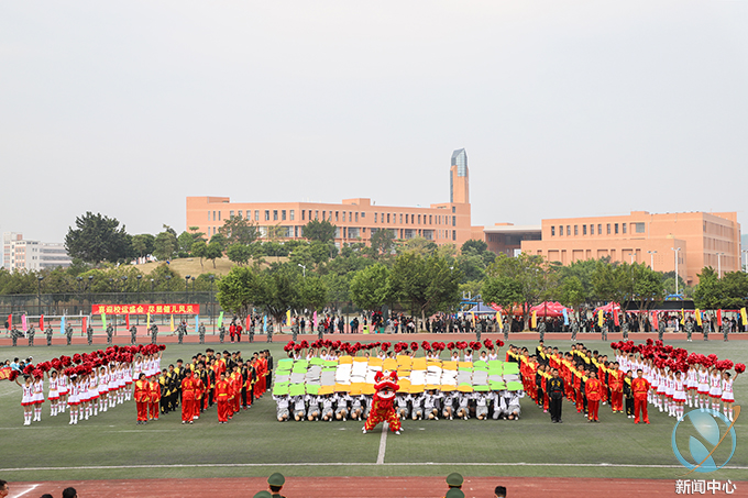 (学生文字记者:吴海霞)11月23日,我校第十三届田径运动会开幕式于足球场隆重举行,运动场上彩旗飘扬,横幅满挂,观看台上人声鼎沸,座无虚席。学校党委书记韦荣、校长陈德清、河源市体育局副局长黄玉珍、龙川霍山矿泉水工厂总经理谢俊峰、河职院附属小学校长夏艳以及学校各处室、各院部负责人、全体裁判员、运动员、师生代表参加了本次开幕仪式,仪式由副校长赖小景主持。