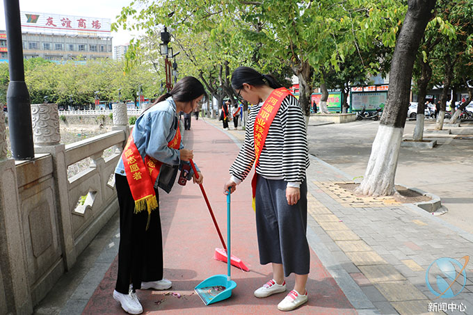 活动前,志愿者们在鳄湖公园石碑处排队集合,分组。各个小组分别到指定的区域进行清洁。同学们身戴授带,手持工具,从东至湖滨路、西至上城环城东路、南至紫河路、北至飞鸾桥进行清扫。有不少到公园散步游玩的市民对正在打扫的同学们纷纷投来赞赏的目光。公园的环卫工人杨女士赞叹道,由于昨晚刮了风下了雨,公园里到处积满了水和垃圾,同学们的服务正好帮她减轻了工作负担。青年委员叶增志表示,本次志愿环保活动志愿者的工作表现总体是不错的,大部分都很认真。”