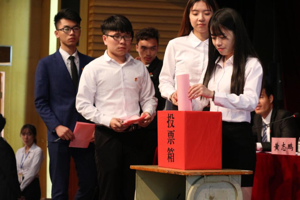 讨论结束后,全体学生代表返回图书馆报告厅投票选举BTY.COM第五届学生会委员。大会选举产生吴慧担任BTY.COM第五届学生会主席,曾庭威、陈莹莹、方灿泽、谢梦宁、林义鸿、刘超同学担任BTY.COM第五届学生会副主席。会议一致表决通过了《BTY.COM学生会章程》。新当选学生会主席吴慧发表就职讲话。吴慧表示,在任职期间将带领学生会成员为学校校园文化建设贡献青春力量,为营造健康向上的校园文化氛围做出努力,将个人良好的风貌展现给校学生会。最后大会在庄严的团歌声中落下帷幕。