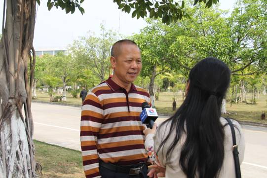 新生代表东源县叶潭镇峣嶂文忠家庭农场主邹文忠同学接受电视台采访