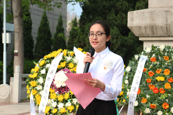 活动伊始,我校学生代表吴慧发言表示,当代青年应珍惜当下美好时光,继承先烈的遗志和精神,用我们的汗水和智慧,努力学习和工作,为中国经济建设和社会稳定贡献自己的青春力量。接着,黄志鹏副书记发表讲话,他指出,当代青年应当牢记誓词、弘扬革命精神、不忘初心、牢记使命,努力使自己成为一名优秀的社会主义接班人。