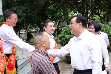 河源市委、市政府对劳模表彰大会高度重视,4月27日下午,河源市人大常委会副主任、市总工会主席陈荣卓,市总工会领导班子为参加省劳模表彰大会的代表举行了欢送仪式,陈荣卓在欢送仪式上讲话,勉励劳模代表要充分展示河源劳模的良好精神风貌,积极宣传和推介河源,要充分发挥好劳模的影响力、示范性和带动作用,为河源决胜小康、率先振兴和同步现代化作出新的更大的贡献。