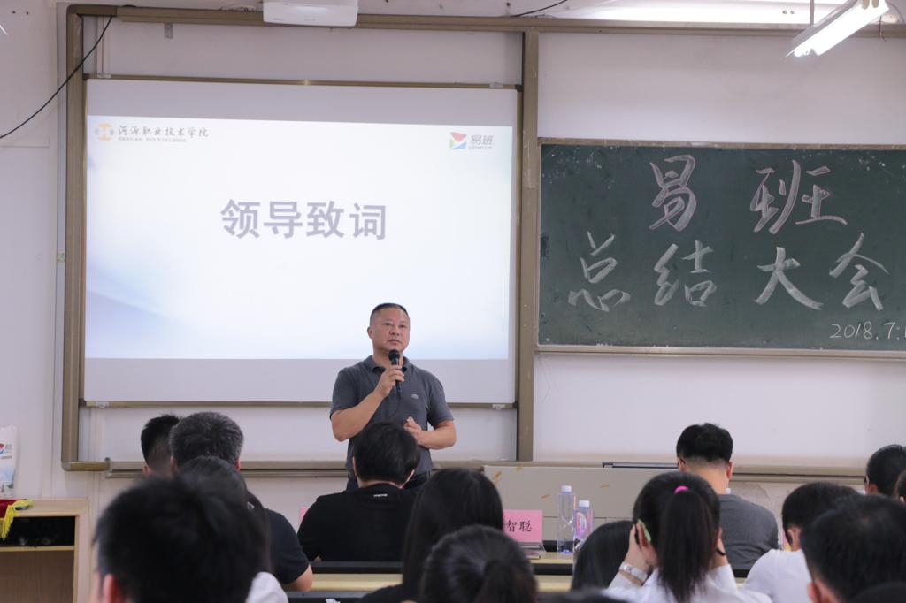 最后,学生工作处处长何智聪发表讲话。他首先代表学工处对校院二级易班工作站在这一学年中的工作表示了充分的肯定。他在发言中提出两点要求,一是要求加强党和国家的政策学习,提高思想认识,高度重视易班平台的深入了解与宣传;二是要求结合网络时代要求和新青年大学生思想的实际性、客观性建设易班平台以及高效使用易班平台的功能。同时,他还对易班工作提出两点希望:一是希望全体易班工作人员不忘初心、砥砺前行,努力开创易班工作的新局面;二是希望全体易班工作人员主动承担责任,主动成长,以自身的不懈努力为易班明日的辉煌添柴加火。