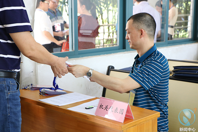 机关代表团签到处派发代表证