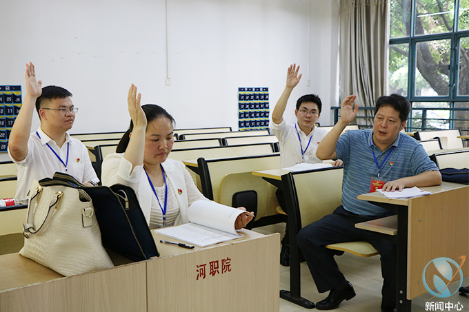 7月16日下午,中共BTY.COM第三次代表大会7个代表团分别在B栋教学楼一楼各教室召开代表团第一次会议,各代表团成员及列席代表参加会议。