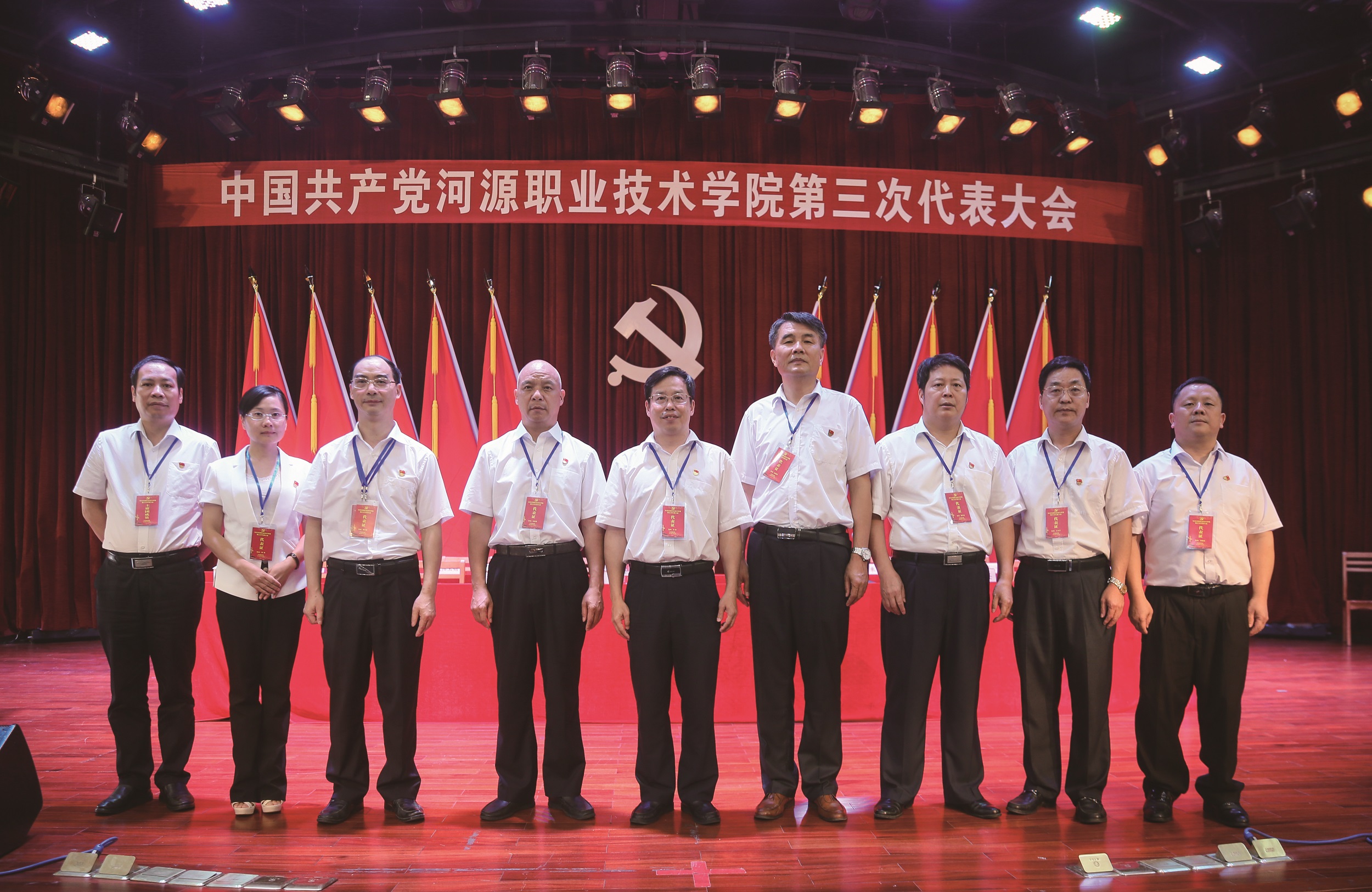 新一届党委委员合影(从左至右):黄建华、向琼、赖小景、叶国英、韦荣、陈德清、陈农心、王小宁、赖新优