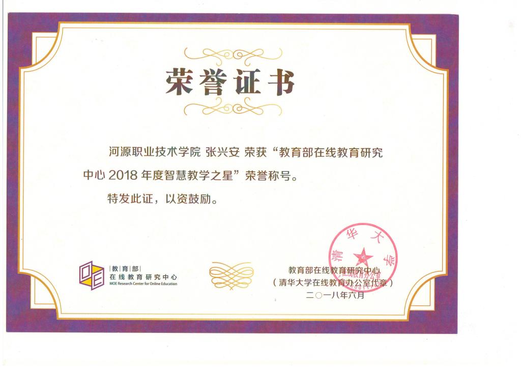 近日,教育部在线教育研究中心公布了“智慧教学之星”荣誉称号评选结果,共有160人获得此项荣誉称号。根据公布的结果,广东共有五位老师获此殊荣,高职院校两位老师入选,机电学院张兴安老师是其中之一,体现了我校教师的风采。