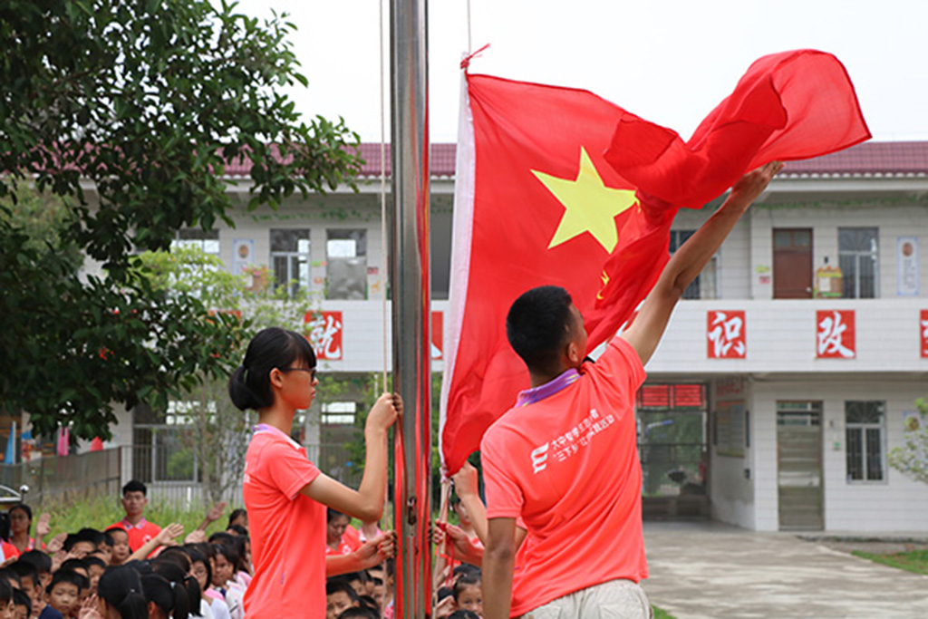 7月23日,我校参加2018年暑期“三下乡”社会实践活动的志愿者们在紫金县凤安镇下石村下石小学举行升旗仪式。“三下乡”全体志愿者以及暑期兴趣班学生参加了此次升旗仪式。
