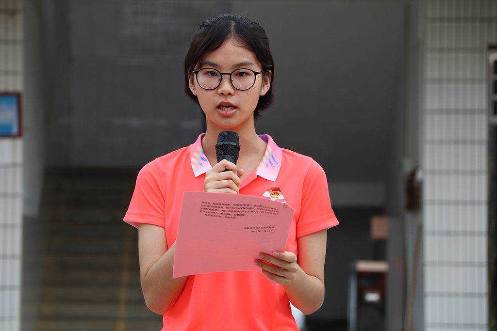 升旗仪式后,“三下乡”志愿者代表苗蕴琦上台发言。她表示,我校大学生暑期“三下乡”活动是以高举习近平新时代中国特色社会主义思想为指导,紧紧围绕中国共产党BTY.COM第三次代表大会精神,落实育人教育、实践教育等各项目标的社会实践活动,体现了“三下乡”社会实践活动的重要性和必要性。