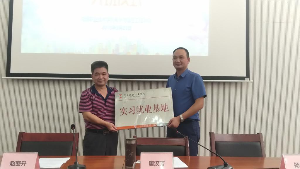 唐汉芳副校长表示,“纽恩泰定向班”的成立是我校深入学习贯彻党的十九大提出的‘完善职业体系、深化产教融合、校企合作’的重要举措,他对在座的同学提出了建议:一是要珍惜这次机会,抓住机会,努力学习,成为公司骨干;二是要严格遵守学校和公司的规章制度,尊敬公司领导、管理人员、同事,礼貌待人。最后祝本次“纽恩泰定向班”开班成功。并授予纽恩泰“实习就业基地”牌匾。
