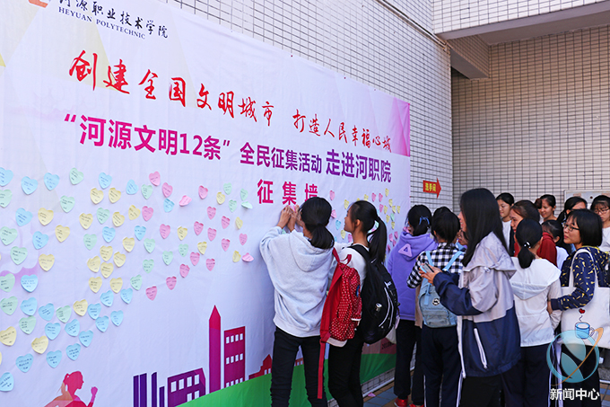 10月30日,我校于艺术楼演播厅开展由市文明办主办,BTY.COM和河源日报承办的“河源文明12条全民征集活动”。我校党委书记韦荣、党委副书记叶国英、市文明办副主任邝茂华、河源日报社委罗仁忠、校团委书记陈晓峰、校学生工作处处长何智聪、校保卫处处长叶锦辉等相关负责人出席本次活动,参会人员还有各二级学院党总支副书记、团总支书记、辅导员、学生代表等。