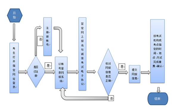 网上报名分为注册账号、填报信息、网上缴费三个步骤。