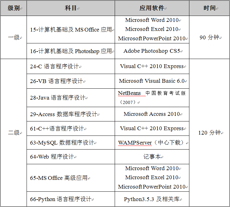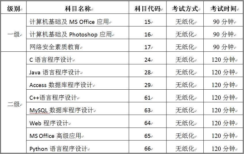 2020年3月全国计算机等级考试开考科目(BTY.COM考点)