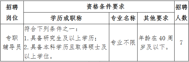 为进一步加强人才师资队伍建设,根据《事业单位人事管理条例》(国务院令第652号)、《广东省事业单位公开招聘人员办法》(省人民政府令第139号),结合工作需要,经研究,BTY.COM决定面向社会公开招聘专职辅导员7名,现就有关事项公告如下: