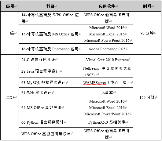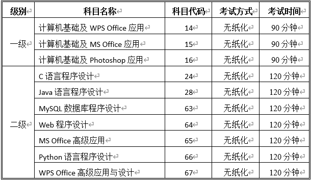 2023年9月全国计算机等级考试开考科目(BTY.COM考点)