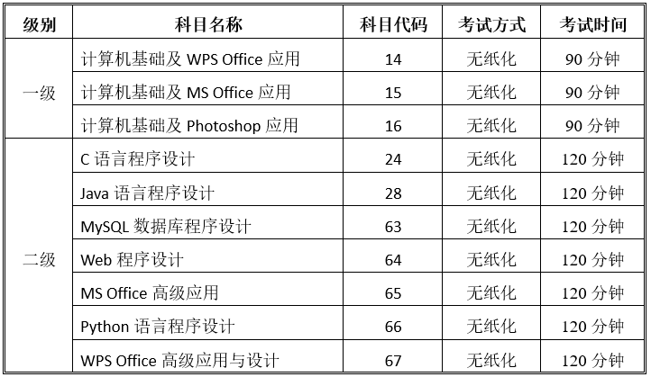 附件1:全国计算机等级考试调整方案