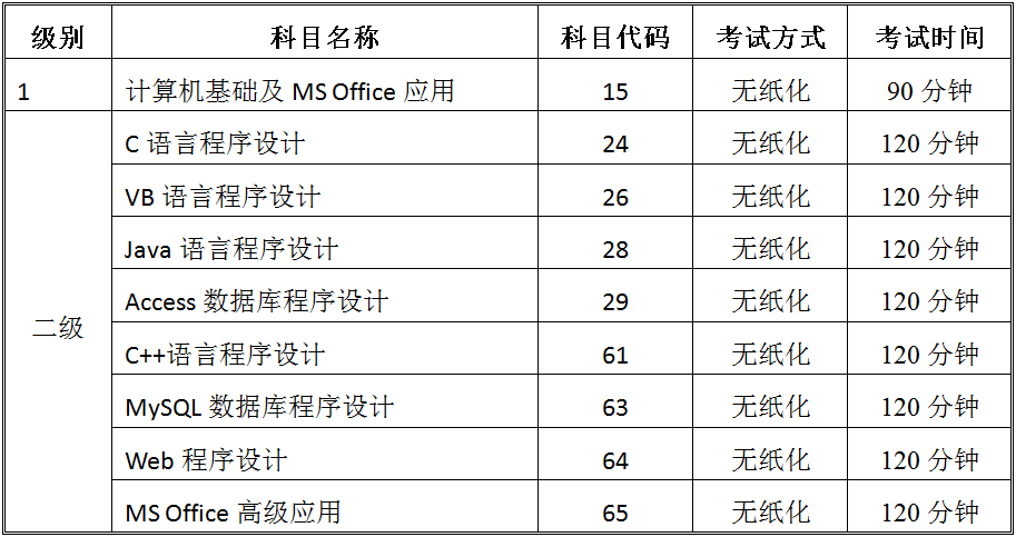 附件1:全国计算机等级考试调整方案