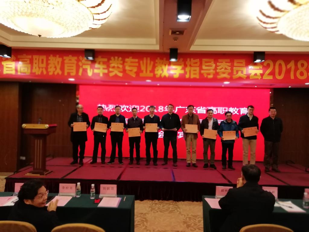 我校汽车智能技术专业是广东省首个面向智能网联汽车行业开设的对口专业。为此,汽车智能技术专业主任陈纪钦在此次会议上向全省汽车类专业的同行分享了我校汽车智能技术专业建设的思路与实践。同时,陈纪钦老师被增补为本届广东省高职教育汽车类专业教学指导委员会委员,并被颁发了委员聘书。