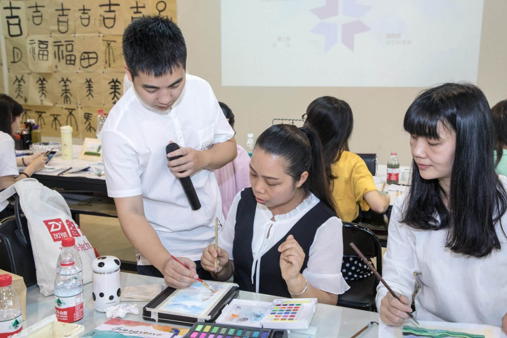 4月30日,河源市小学美术教师“水彩小幅创作”交流活动在雅居乐财富中心12楼隆重召开。本次活动由河源市教育局教研室主办,特邀的授课导师为广东高校美术与设计教育专业委员会理事、广东省美术家协会会员、河源市美术家协会理事、河源市青年美术家学会副主席、广东省BTY.COM美术教育专业主任廖敏老师,全市共59名小学美术骨干教师参加了活动。