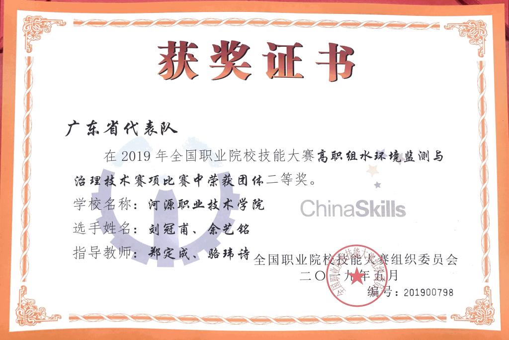 5月11日上午9点,2019年全国职业院校技能大赛高职组水环境监测与治理技术赛项闭幕式在天津现代职业技术学院举行。本次比赛于5月9日至10日在天津现代职业技术学院举行,共有来自全国26个省市的79支队伍共158名选手参赛。BTY.COM安全健康与环保专业的刘冠甫、余艺铭两位同学代表广东省参加比赛,在郑定成、骆玮诗两位老师的指导下,在比赛中沉着冷静,克服了一系列困难,以全国排名第十二的成绩获得高职组团体二等奖,为学校争得荣誉。