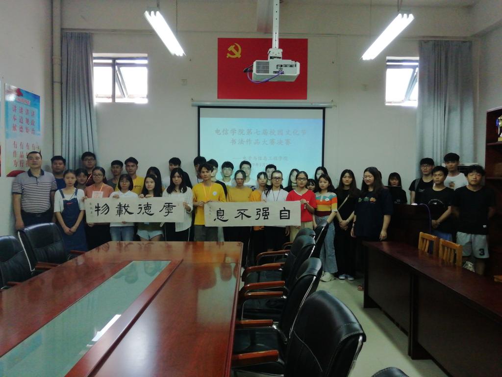 为深入学习贯彻习近平总书记在纪念五四运动100周年大会上的重要讲话精神,5月14日,电信学院在实训楼A208开展以“我和我的祖国”为主题的校园文化节书法作品大赛决赛。参加本次决赛的有评委、团总支学生会主席团成员、宣传部、新闻网络中心、比赛选手,活动由团总支书记杨日奎老师主持。