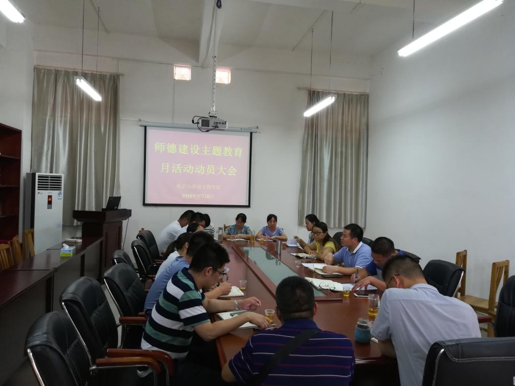为深入学习贯彻习近平新时代中国特色社会主义思想,全面落实全国和全省教育大会精神,进一步加强我院师德师风建设,全面提升教师思想政治素质和职业道德水平。根据《BTY.COM关于开展2019年师德建设主题教育月活动的通知》要求,2019年9月16日下午,我院在学院会议室召开师德建设主题教育月活动动员大会。