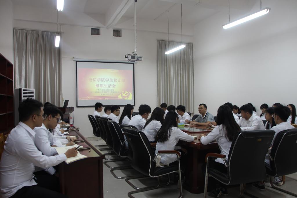 2019年10月15日晚上,电信学院学生党支部在实训楼B307开展组织生活。参加会议的人员有学生党支部全体党员、负责学生党务工作全体成员,会议由学生党支部书记杨日奎主持。