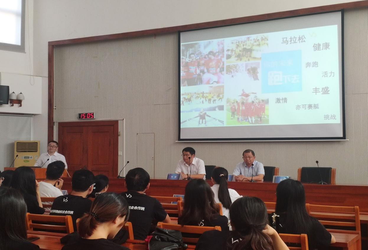 佛山万科物业人力资源高级专业经理董磊先生介绍了万科物业的基本情况和企业文化以及参加鸿鹄班职业发展和培养方案,内容包括多元化课程设置、健康丰盛文化体验、龙头企业实习机会、行业顶尖专家教学等。佛山万科物业韦赫专家表示,校企合作订单班为企业发展和学生成长提供了良好的平台,并就大家关心的个人能力培养与职业空间发展等问题进行了现场互动。杨惠文师姐作为首届鸿鹄班的一员发言,感谢学院和企业提供如此良好的机遇,表示校企合作的建立很好的实现了理论知识与社会实践的结合,在佛山万科物业实习工作使她得到了很大的成长和提升。希望师弟师妹们扬起理想之帆,趁着完美时光,踏上新征程,创造新成绩。