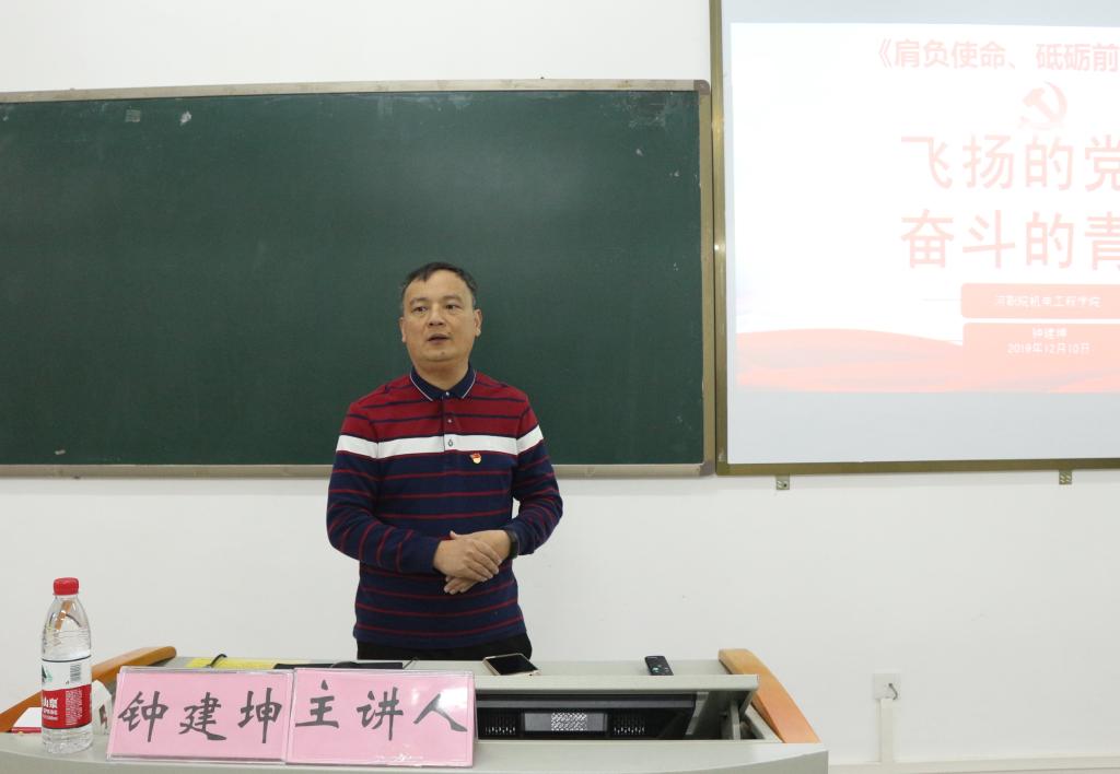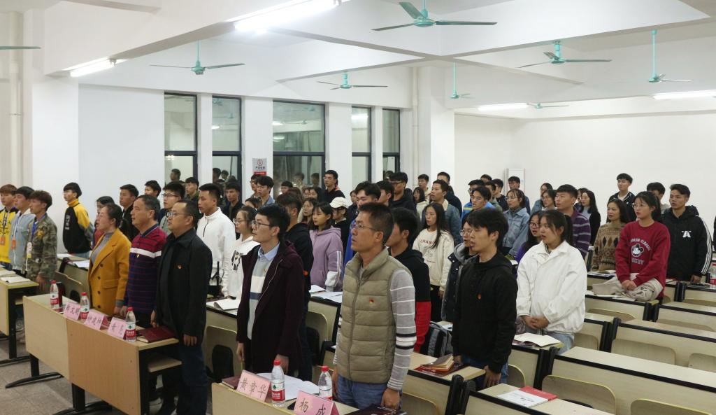 12月10日,机电学院第37期入党积极分子党校培训班开班仪式暨《肩负使命,砥砺前行》主题报告在实D312举行。学院党总支书记钟建坤、副书记黄亮、学生党支部全体委员及76位学生新入党积极分子出席此次开班仪式,活动由学生党支部组织委员赵雯钊主持。