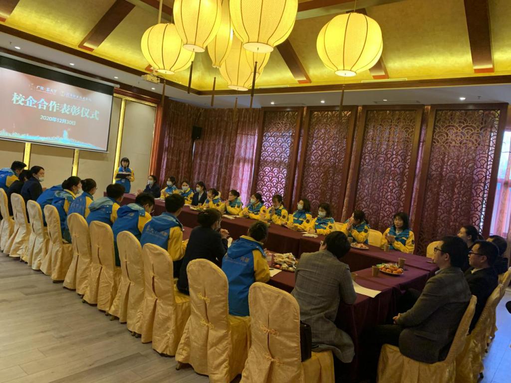 俞彤院长代表学校给河源客天下颁发了2020年校企合作办学“先进单位”和“先进个人”。