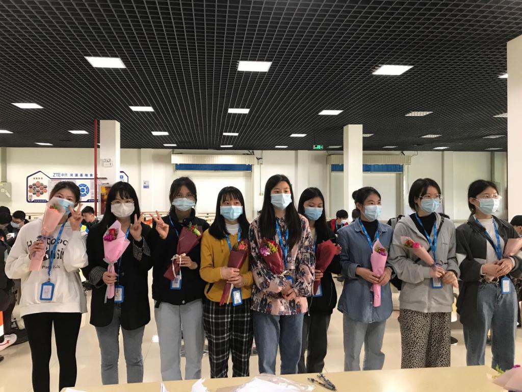 学生前往中兴通信生产基地后,冯经理给大家安排好宿舍,填写入职相关资料。恰逢第111个三八国际妇女节,公司给每位女同学送上了节日的问候和礼物。
