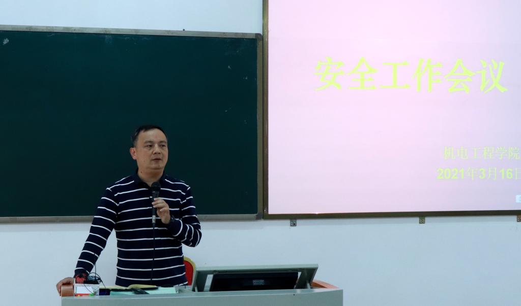3月16日下午,机电工程学院在实训楼D312召开安全工作会议,学院全体教职工参加了此次会议,会议由黄亮副书记主持。