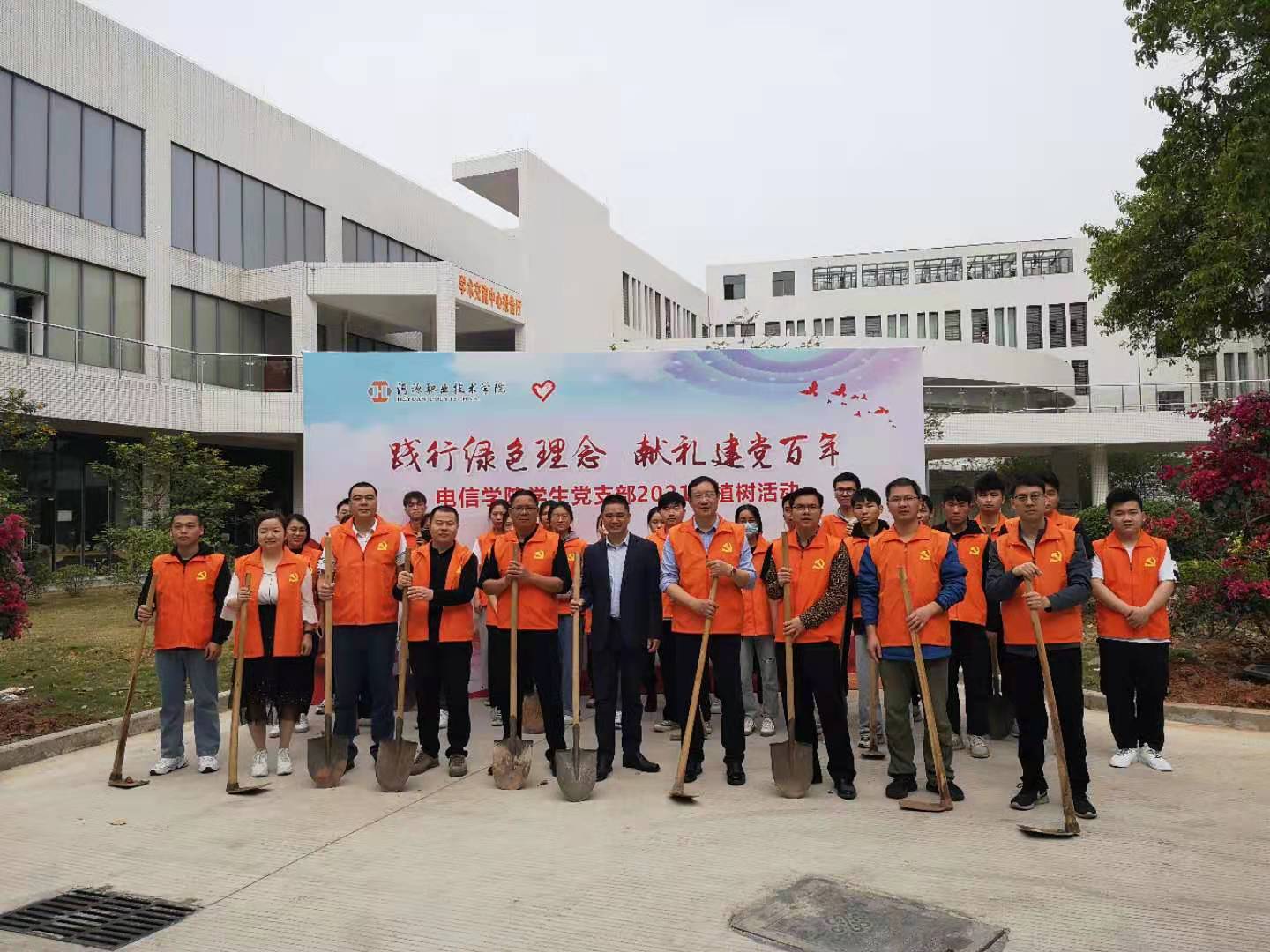 春暖花开万物苏,植树添绿正当时。3月12日,电信学院学生党支部组织全体党员、入党积极分子近百人在校园开展以“践行绿色理念 献礼建党百年”为主题的植树造林活动。学校陈德清校长、袁光华副校长、组织人事处黄建华处长、资产后勤处廖远兵处长、信息中心杨文主任、电信学院班子成员及学生党支部全体党员、入党积极分子代表等参加了活动。