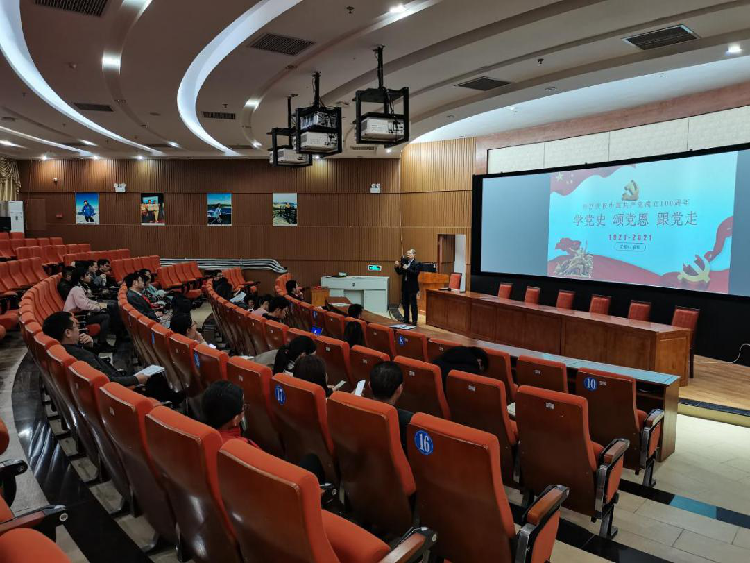 今年是中国共产党成立100周年。党中央决定,在全党开展党史学习教育。为了响应党中央的号召,带领全院教师党员从党的光辉历史中汲取砥砺奋进的精神力量,2021年3月23日下午,工商管理学院党总支书记、院长俞彤同志在交流中心一楼3D模拟实训室进行了以“学党史 颂党恩 跟党走”为主题的党课讲授。学院全体教师党员参加了此次党课学习。