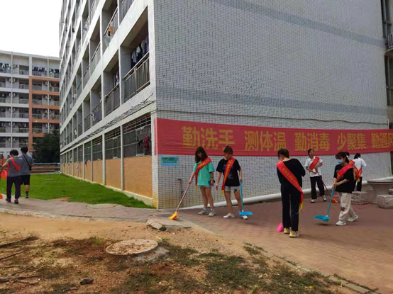 20文秘2班的同学在宿舍区域进行志愿劳动