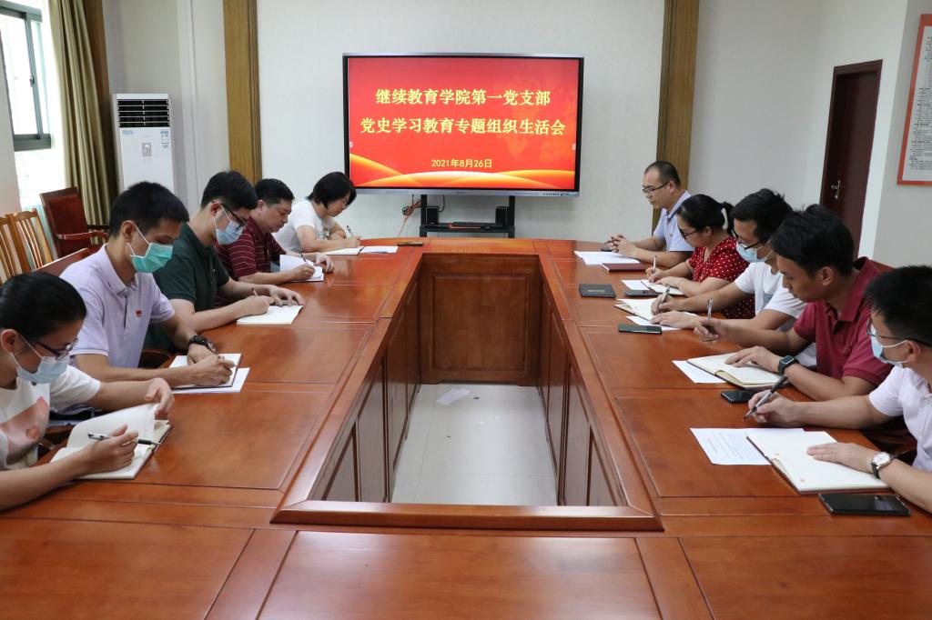 8月25日,继续教育学院党总支召开党史学习教育专题组织生活会。会议由副书记彭仲文同志主持,全体支委及专职组织员参加会议。