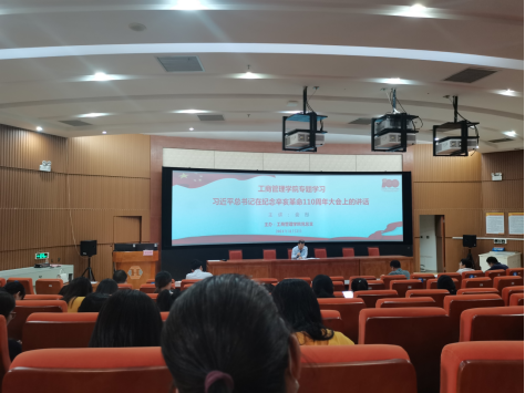 11月2日下午,工商管理学院在学术交流中心一楼3D模拟实训室召开习近平总书记在纪念辛亥革命110周年大会上的重要讲话精神专题学习会,缅怀孙中山先生等辛亥革命先驱的历史功勋,学习和弘扬他们为振兴中华而矢志不渝的崇高精神。学习会由学院党总支书记俞彤同志领学。