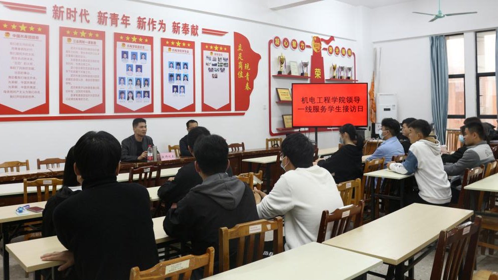 12月15日下午,机电工程学院开展院领导接访学生日活动,学院党总支纪检委员廖晓明副院长、汽车智能技术专业教师及专业学生代表参加接访活动。