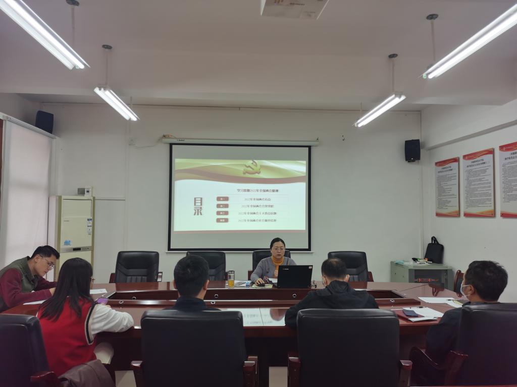 会上,党总支书记罗春娜同志领学了2022年全国两会精神。她从2022年全国两会看点、2022年全国两会会议议程、2022年全国两会十大热点话题、2022年全国两会社会调查结果四部分内容,引导与会同志深入领会两会精神、了解惠民利民相关政策,更加深刻地认识“两个确立”的意义,增强“四个意识”、坚定“四个自信”、做到“两个维护”。