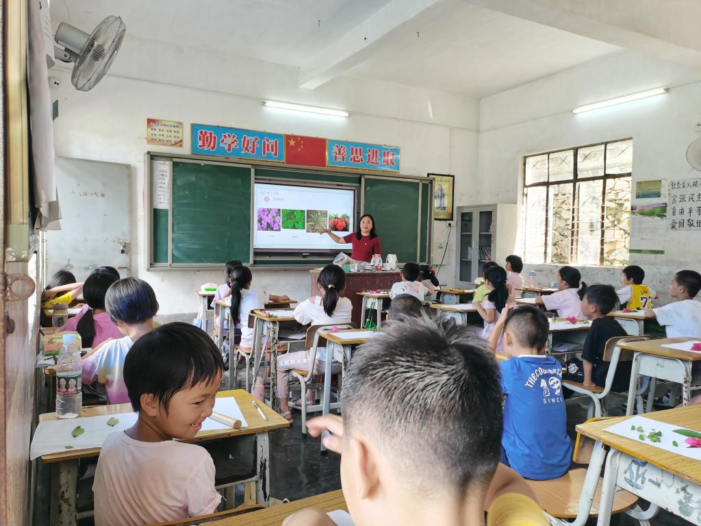 上午,党支部来到“三下乡”活动目的地瑶坑小学为小学生们献上了两堂精彩的实践课——由胡叶娟老师讲授的植物拓染实践课和由黄秀丽老师讲授的非遗扎染实践课。两位老师为小学生们精心准备了实践课必需的材料、工具等,然后在其他老师及“三下乡”学生志愿者的协助下,通过讲授、实操示范、现场指导及作品展示等环节,顺利完成了实践课教学。在课堂上,小朋友们对实践课非常感兴趣,也非常好奇,他们认真听课、积极实操、大胆提问,最后都完成了自己的作品。通过讲授实践课,开拓了小学生的知识视野,提高了小学生的手工制作能力,同时,培养了小学生热爱生活、热爱大自然的意识,帮助小学生树立起传承中国传统文化的观念。